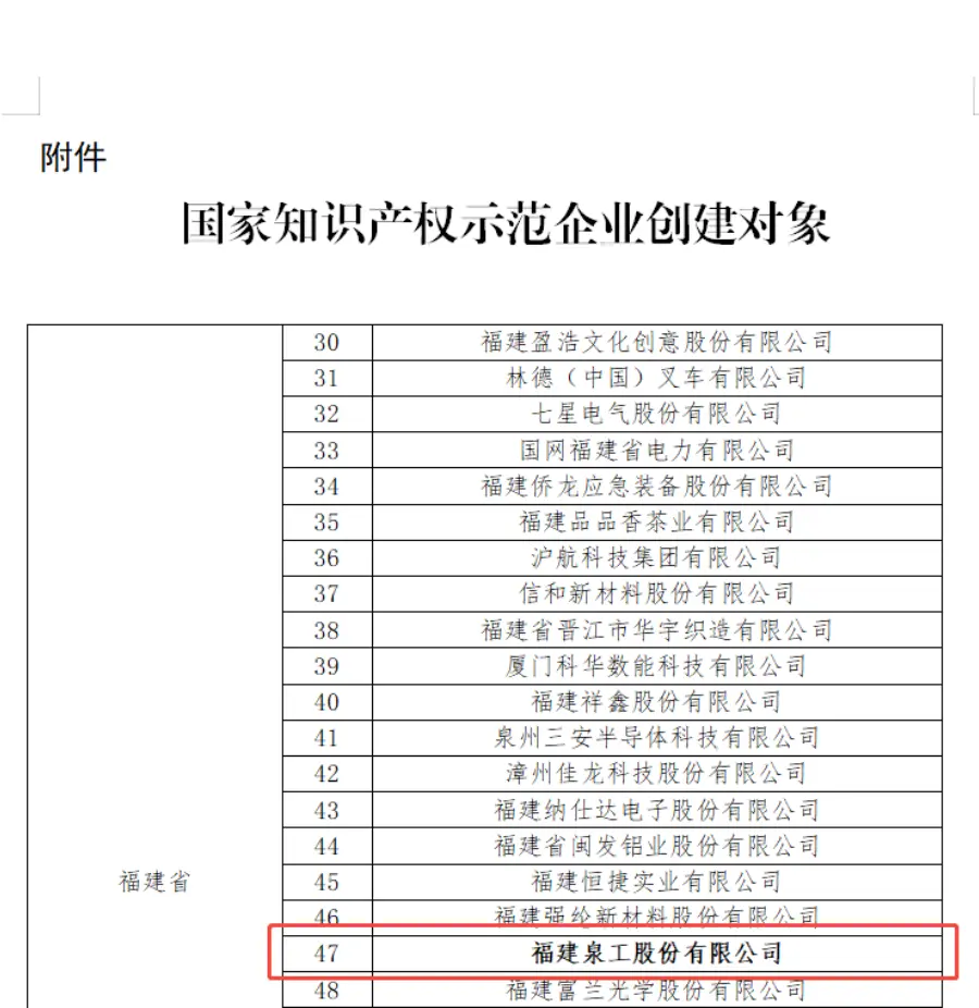 Αναγνώριση σε εθνικό επίπεδο: Η Quangong Machinery Co., Ltd. έχει επιλεγεί ως υποψήφια για το πρόγραμμα National Intellectual Property Demonstration Enterprise.