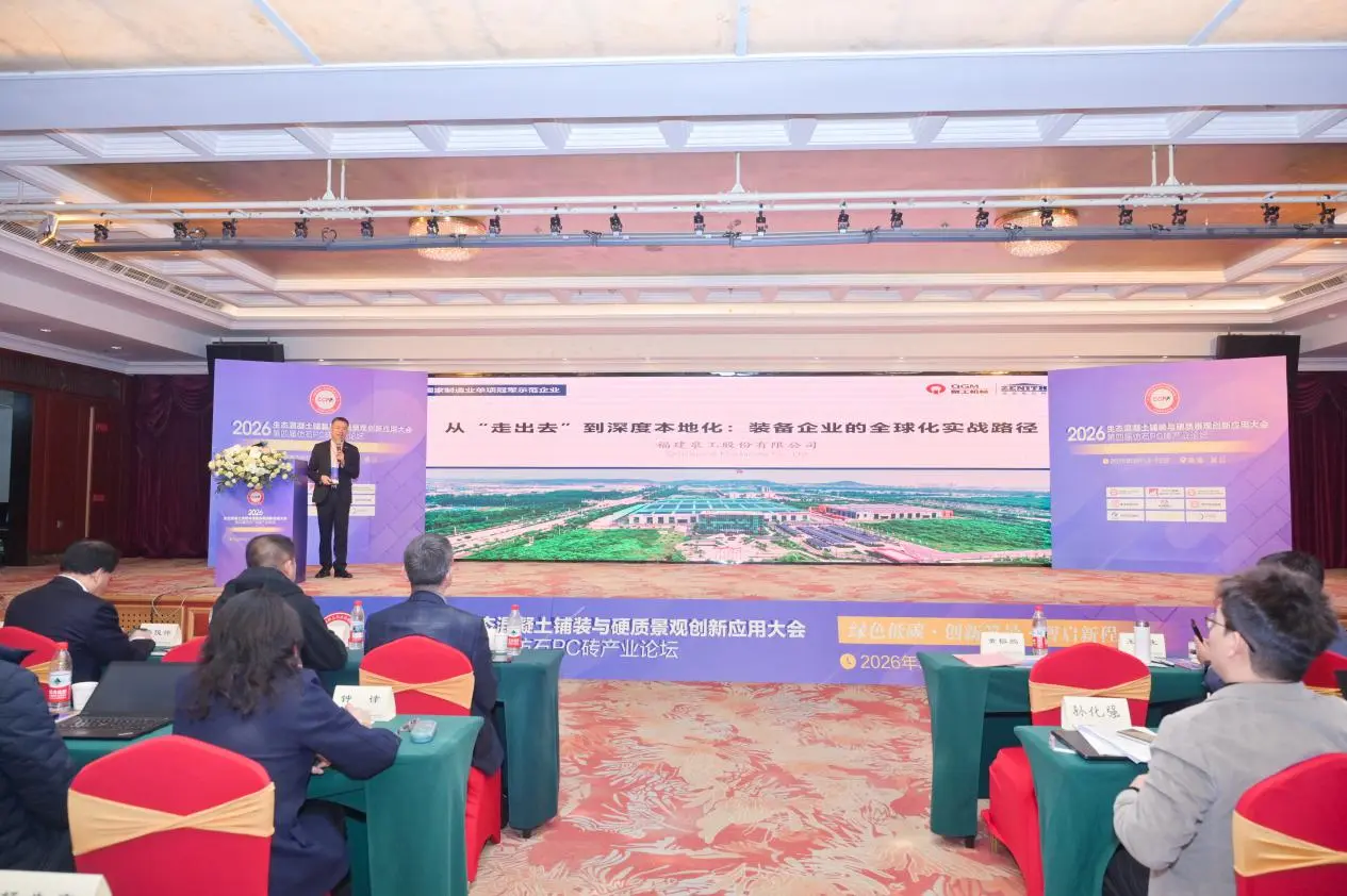 Από τις 13 έως τις 15 Μαρτίου, πραγματοποιήθηκε στο Jinjiang, Fujian, το Συνέδριο του 2026 για τις Καινοτόμες Εφαρμογές Οικολογικής Πλακόστρωσης και Σκληρού Σκυροδέματος, παράλληλα με το 4ο Φόρουμ Βιομηχανίας για Απομίμηση Πέτρινων Τούβλων Η/Υ. Το συνέδριο, με θέμα «Πράσινο & Χαμηλό Άνθρακα: Καινοτόμα Τοπία, Έξυπνα Χαράγγιση ενός Νέου Μαθήματος», συγκέντρωσε εμπειρογνώμονες, μελετητές και εκπροσώπους εταιρειών από τομείς όπως η Ε&Α, η κατασκευή, ο σχεδιασμός, η κατασκευή, οι δοκιμές και η κατασκευή εξοπλισμού. Μαζί, διερεύνησαν καινοτόμους αναπτυξιακούς δρόμους για τις βιομηχανίες οικολογικής επίστρωσης σκυροδέματος και σκληρού τοπίου. ΦουτζιάνQuangong Machinery Co., Ltd.προσκλήθηκε να παρευρεθεί στην εκδήλωση, όπου δημιούργησε ένα εκθεσιακό περίπτερο για να παρουσιάσει τα τεχνολογικά επιτεύγματα της εταιρείας και τις ολοκληρωμένες λύσεις συστημάτων στη σφαίρα του εξοπλισμού κατασκευής προϊόντων σκυροδέματος.