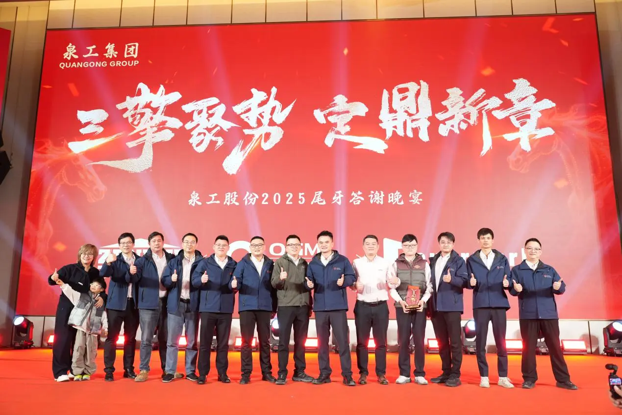 Το απόγευμα της 3ης Φεβρουαρίου,Fujian Quangong Machinery Co., Ltd.πραγματοποίησε την ετήσια σύνοψη και την τελετή απονομής βραβείων του 2025 και τον εορτασμό της Πρωτοχρονιάς στο Quanzhou Donghai Honor Hotel, με θέμα "Τρεις μηχανές που συγκλίνουν, θέτουν ένα νέο κεφάλαιο". Οι ηγέτες της εταιρείας, οι βασικοί εκπρόσωποι πελατών, όλοι οι εργαζόμενοι και οι οικογένειές τους συγκεντρώθηκαν για να αναθεωρήσουν το ταξίδι της σκληρής δουλειάς, να μοιραστούν τα επιτεύγματα ανάπτυξης και να προσβλέπουν σε ένα λαμπρό μέλλον.