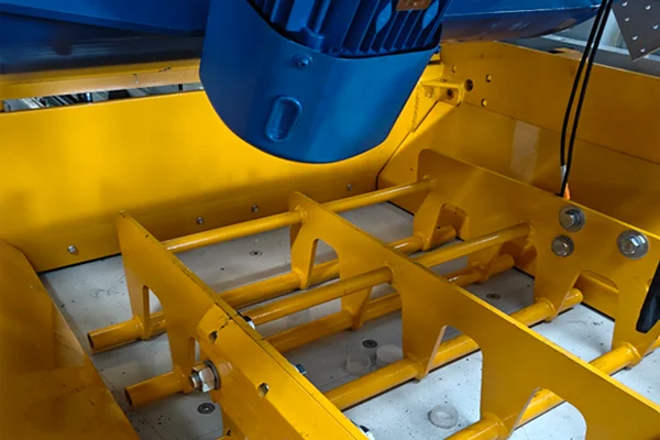 4 αερόσακοι τοποθετούνται σε κάθε γωνία του τραπεζιού κραδασμών για να μειώσουν το πλάτος των κραδασμών κατά τη δόνηση, ώστε να μειωθεί η μηχανική πρόσκρουση του τραπεζιού δόνησης στις παλέτες, μειώνοντας τη ζημιά των παλετών κατά την παραγωγή για να βελτιωθεί η διάρκεια ζωής των παλετών.